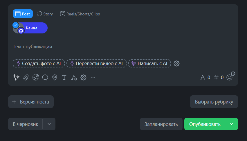 si possono generare immagini direttamente nell'editor di Postmypost - e pubblicare subito su VK, Telegram, Instagram*, Odnoklassniki e altre reti.