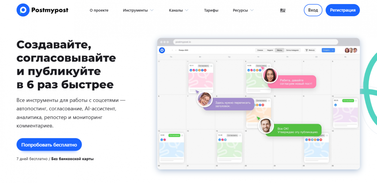La regolarità è la chiave per la crescita su VK. Ma postare manualmente ogni giorno in 3-5 comunità è un modo diretto per arrivare a un esaurimento emotivo e professionale. Qui aiuta molto Postmypost – un servizio in cui puoi: