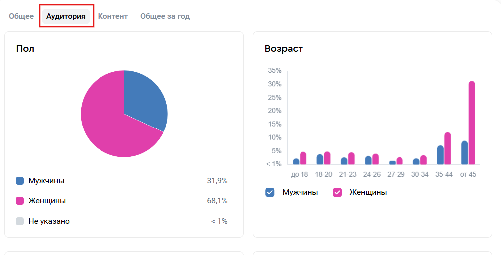 Vale la pena confrontare non solo la composizione dei visitatori, ma anche coloro che si iscrivono realmente. I giovani possono dare un'occhiata, ma non rimanere. In questo caso, è opportuno cambiare il formato di presentazione: postare più video brevi, interattivi, utilizzare un linguaggio vivace.