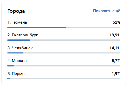 A volte è sorprendente scoprire che una grande parte del traffico non proviene da Mosca, ma ad esempio, da Ekaterinburg o Krasnoyarsk. Questo è un motivo per riflettere su campagne locali: partecipazione a eventi cittadini, targeting su regioni specifiche. Si può persino correggere il tempo di pubblicazione - adattarsi al fuso orario.