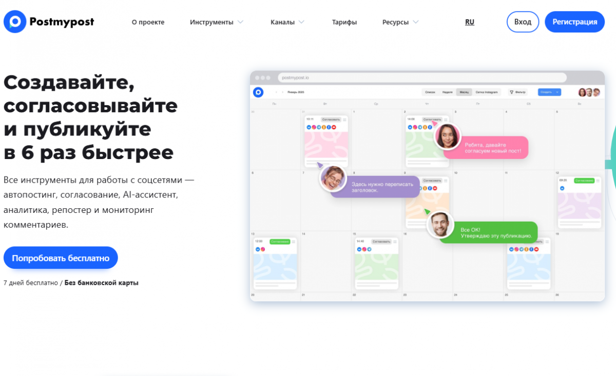 Планируйте и публикуйте посты во все соцсети из одного окна. Без привязки банковской карты.