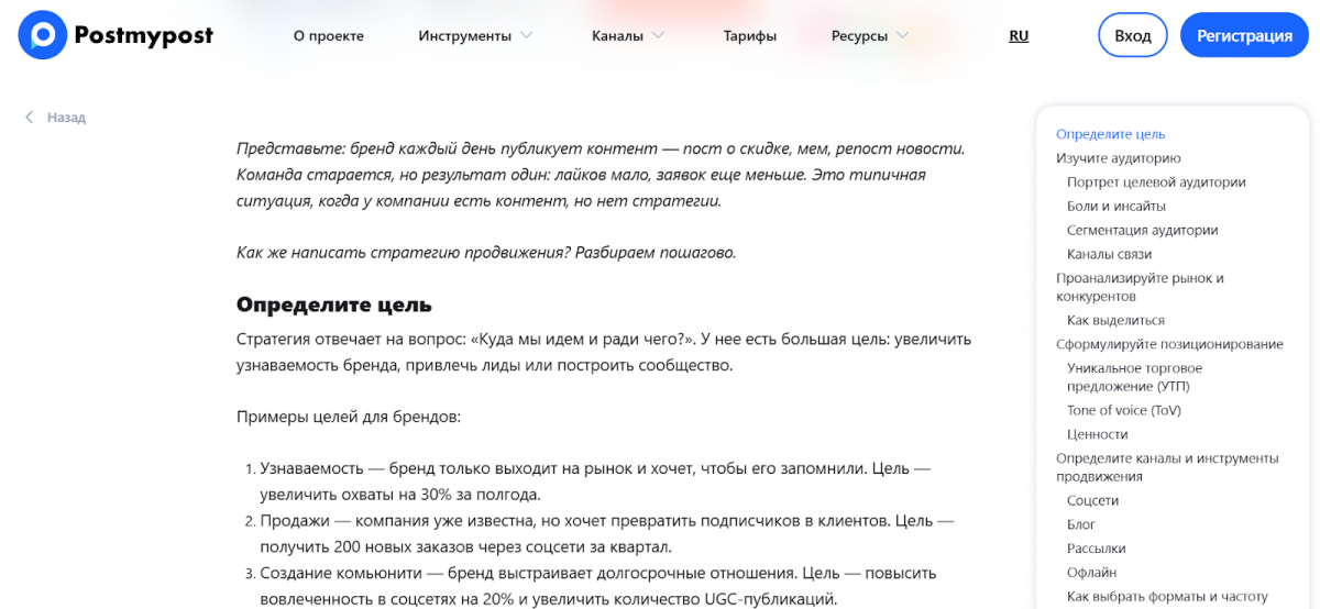 A proposito, se vuoi affrontare le vendite sui social in modo sistematico — inizia con una strategia di promozione completa. In essa definirai gli obiettivi per gli ordini, segmenterai il pubblico (per capire a chi e come rispondere in diretto), sceglierai un bilanciamento dei contenuti (60% utilità + 20% vendite) e configurerai i canali per i lead. Una guida dettagliata passo passo su come creare tale strategia è nel nostro articolo "Come scrivere una strategia di promozione: guida completa".
