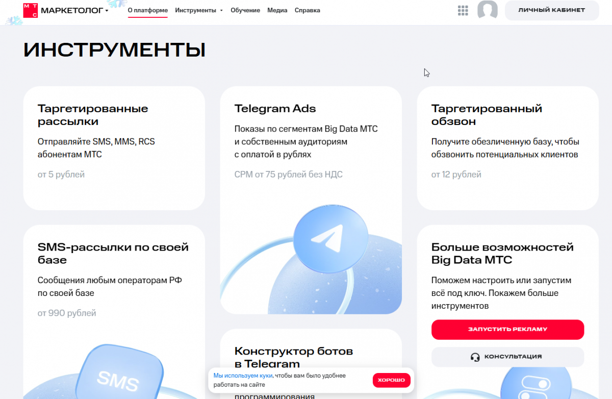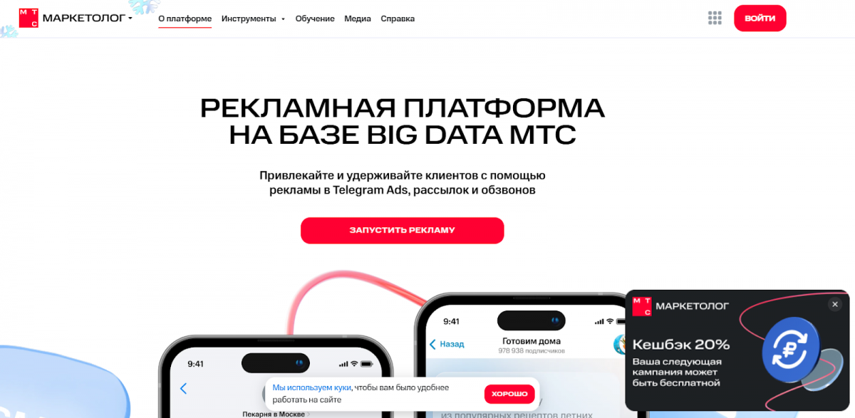 MTS marketer – cos'è? È un servizio per l'avvio e la gestione autonoma delle campagne pubblicitarie, dove vengono utilizzati dati anonimizzati di oltre 65 milioni di abbonati attivi dell'operatore MTS. La piattaforma consente di impostare il targeting su centinaia di parametri: interessi, geolocalizzazione, demografia, reddito, comportamento online e offline, attività nelle app. Grazie a ciò, le aziende hanno accesso a un pubblico veramente rilevante, minimizzando le visualizzazioni inutili e aumentando le conversioni.