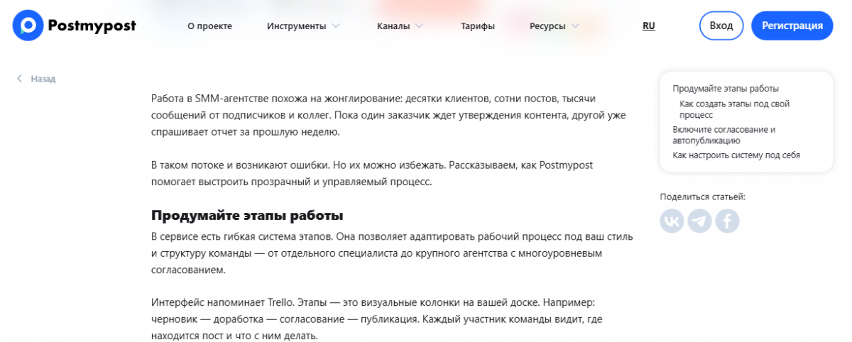 Per maggiori informazioni sulle possibilità di lavorare con contenuti sui social leggi il nostro articolo “Come le agenzie possono gestire 10+ clienti e non confondersi nelle attività”. E su come ottimizzare i processi di pubblicazione di immagini e post - nel materiale “Acceleriamo l'approvazione e la raccolta di report: processi di lavoro in Postmypost”.