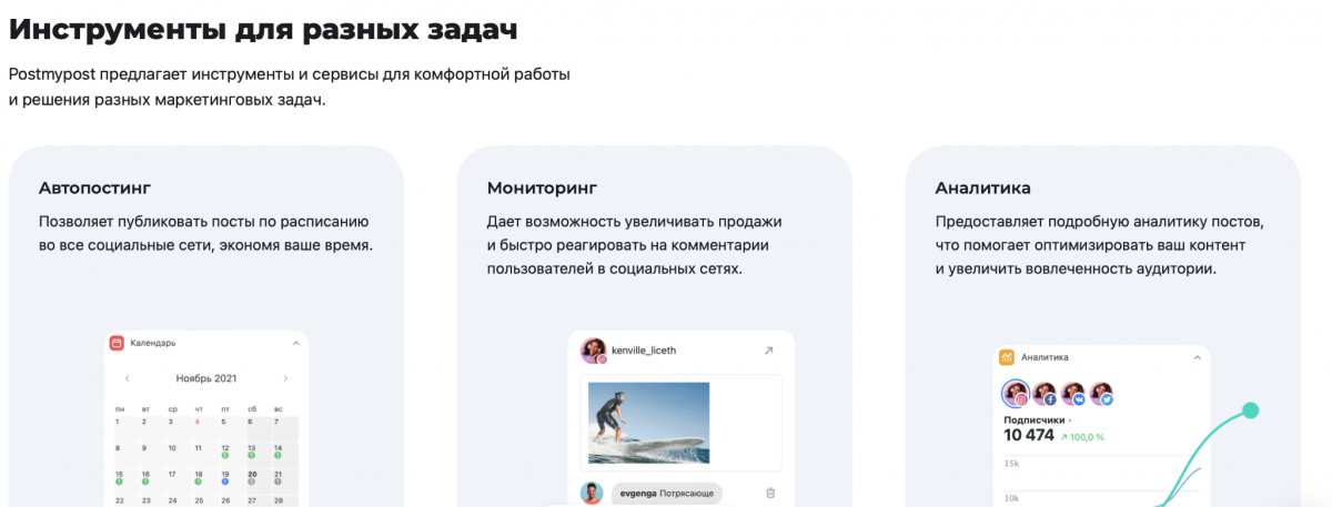 Pubblicazioni frequenti, iterazioni rapide, test di formati e pubblicazione simultanea su più reti non è più un'opzione, ma una necessità. Postmypost consente di caricare contenuti a pacchi, controllare l'autoposting durante le ore di punta, coordinare il lavoro del team in un'unica finestra e vedere quali formati "funzionano" su tutte le piattaforme contemporaneamente. Questo lascia più tempo per la creatività, non per la routine.