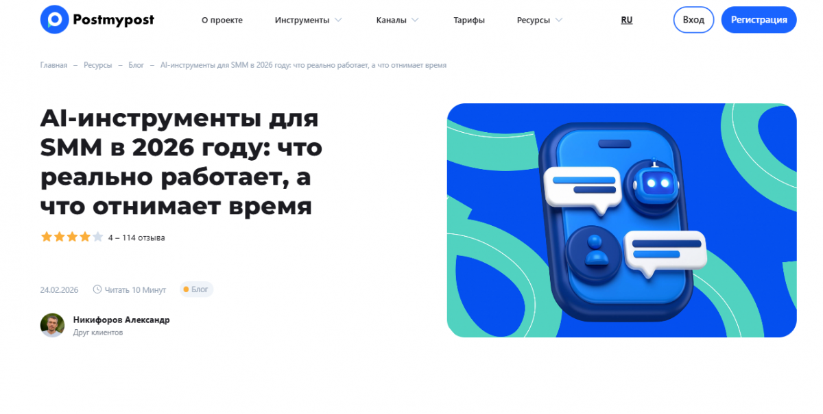 Postmypost consente non solo di tradurre, ma anche di adattare immediatamente il testo per Instagram*, VK, Telegram o Max. Maggiori dettagli sugli strumenti AI reali che funzionano nel SMM possono essere trovati nel nostro articolo “Strumenti AI per SMM nel 2026: cosa funziona davvero e cosa fa perdere tempo”.