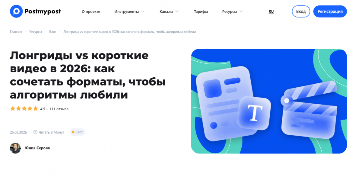 Brevi video verticali funzionano ottimamente per la copertura, ma la lealtà e il traffico sono forniti dai longread. Come combinare correttamente - lo abbiamo analizzato in dettaglio nel nostro articolo "Longread vs video brevi nel 2026: come combinare formati affinché gli algoritmi amino".