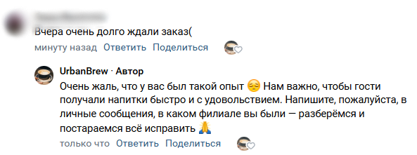 В ответах на комментарии важна скорость: люди быстро забывают, что вообще писали вам. Но специалист не может быть на связи круглосуточно — а пользователи пишут именно тогда, когда им удобно: ночью, в выходные или во время акций, когда поток сообщений еще больше.