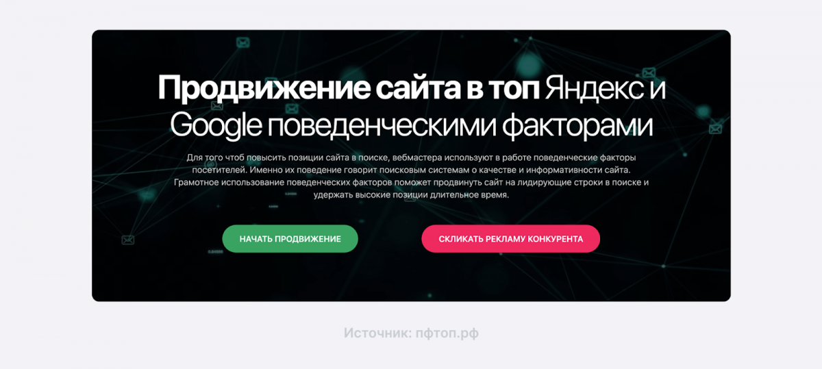 В таком случае для поисковиков подобный трафик выглядит как реальный, что ускоряет попадание в топ. Накрутка действительно может помочь поднять сайты выше в списке поисковой выдачи — до первых трех позиций.