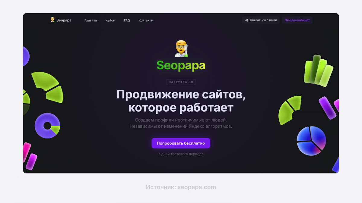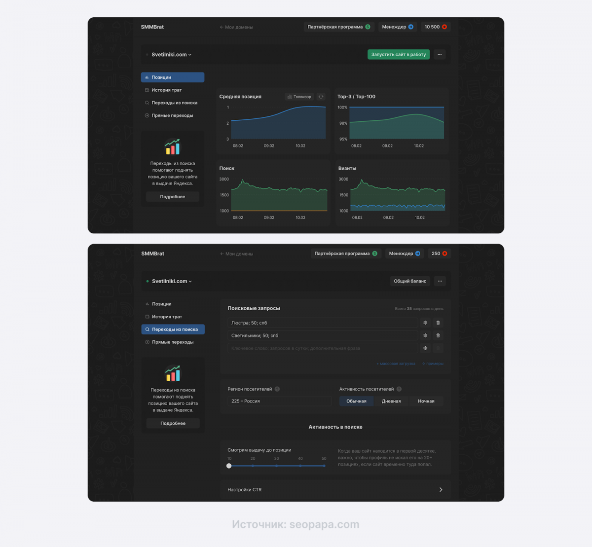 Seopapa — это сервис, который помогает быстро и безопасно продвигать сайты в поисковых системах при помощи эффективной накрутки поведенческих факторов. Он удобен как для тех, кто только начинает разбираться в продвижении, так и для опытных SEO-специалистов.