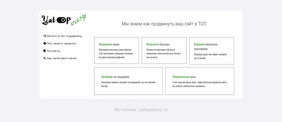 Основной фокус на Яндекс. Может не подойти тем, кому нужно комплексное продвижение по всем поисковикам.