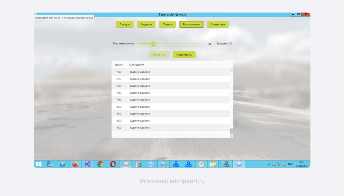 Широкий набор режимов и полезных функций. Поисковые переходы, прямые визиты, эмуляция взаимодействия, видео, многопоточность, таймер, планировщик.