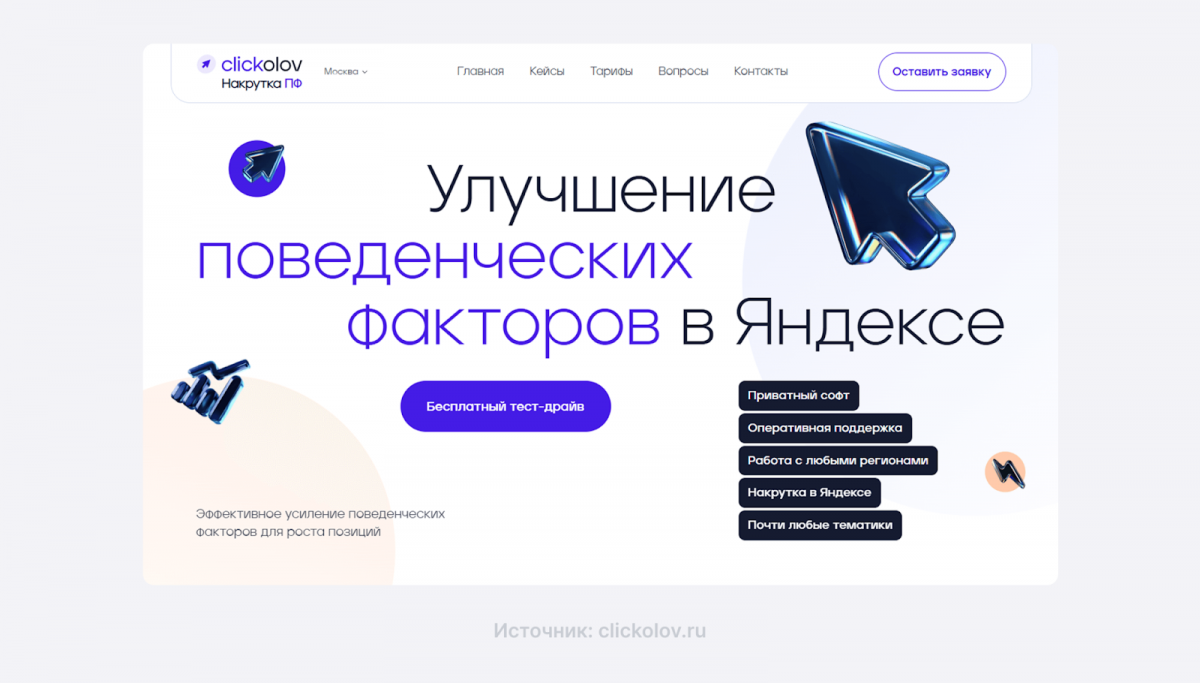 9. Clickolov. Сервис для накрутки поведенческих факторов Яндексе с собственной прокси-сетью и индивидуальными сценариями поведения ботов.