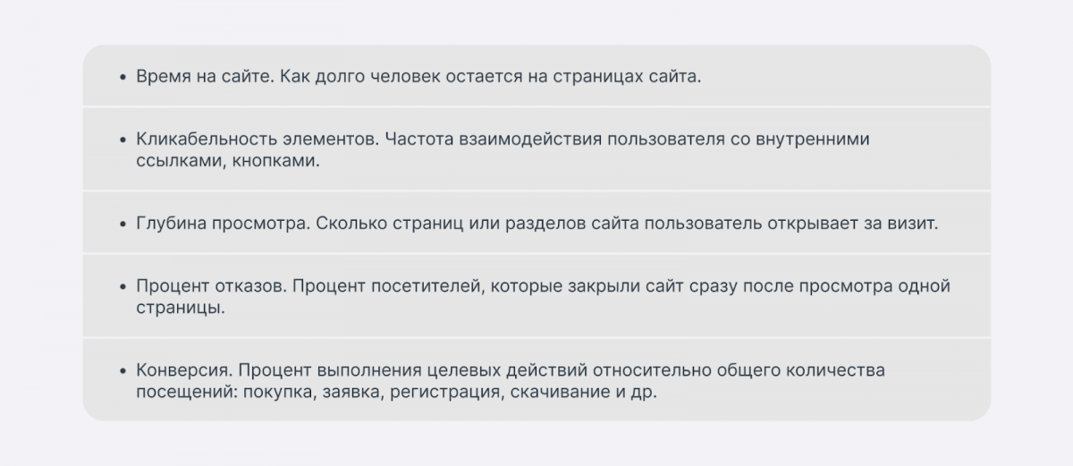 Демонстрируют, как пользователи ведут себя на самом сайте. Набор этих поведенческих факторов помогает поисковым системам понять, какой контент предлагает сайт, интересен ли он и насколько удобно взаимодействовать с ресурсом.